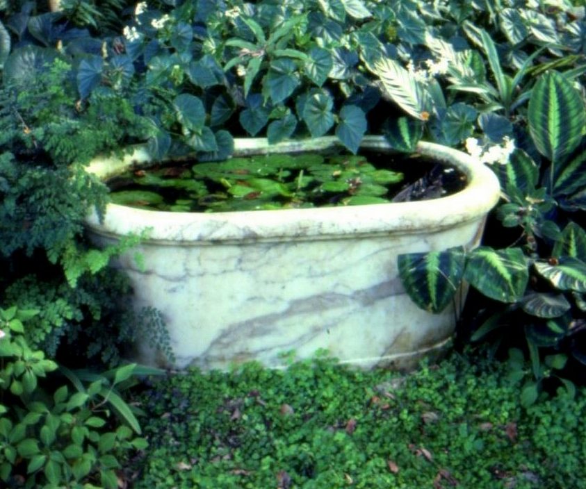Marble tub in a great house formal garden